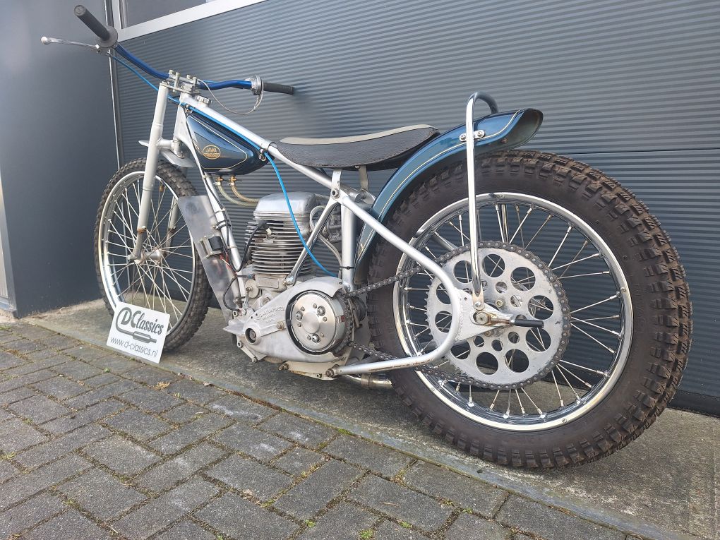 Nette en goed lopende JAWA ESO 2 kleps speedway motor. Heeft de zeldzame stalen tank, stalen achterspatbord en het bijzondere koppelingshandle. Mooie verchroomde stalen velgen, achterwiel met enkelzijdige tandwielmontage Met zeer zeldzame Zweedse gegoten alu primaire kast (Speedwayimporten Sweden). Video van de lopende motor via whatsapp.