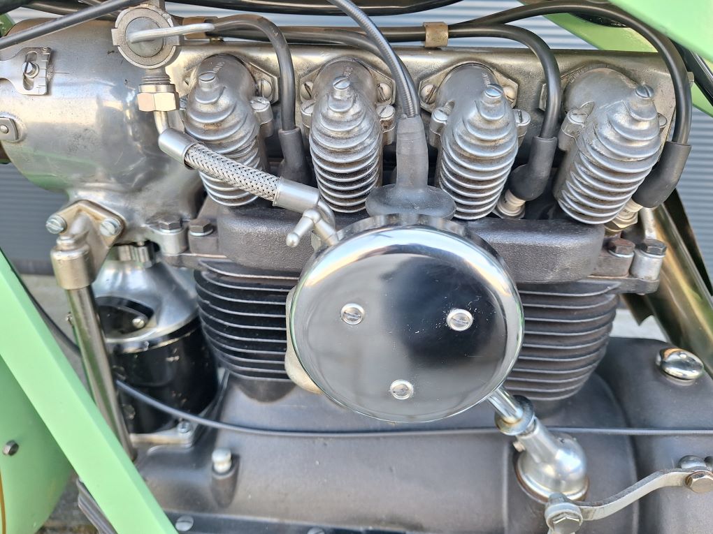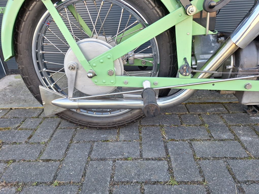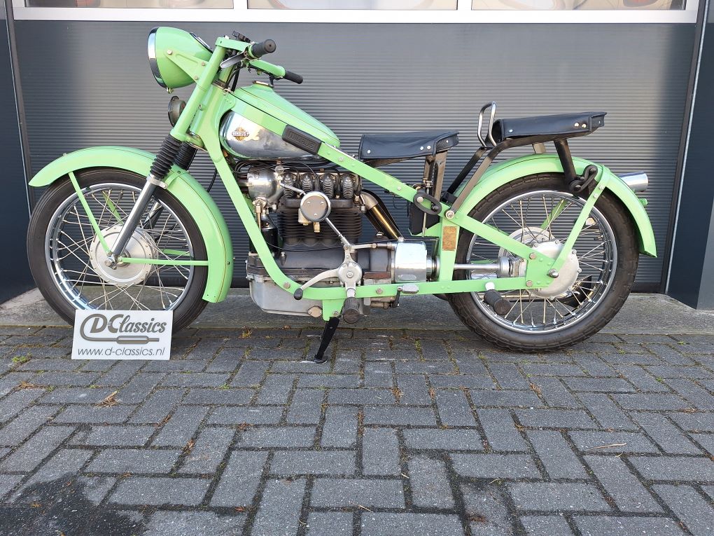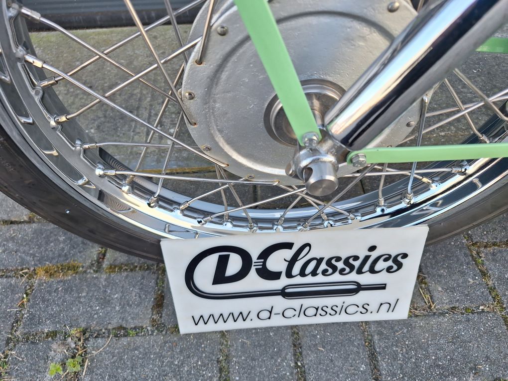Nette gerestaureerde Nimbus C in de laatste uitvoering, dus met de zeer zeldzame klephulzen (uniek!) , stuurslotje en het laatste, verstevigde model frame. Met heel veel nieuwe onderdelen, chroom velgen, vorkpoten en tank, rvs spaken, rvs uitlaat, rvs assen en bouten, rvs uitlaatplaat enz enz. De motor heeft identieke motor- en framenummers, een solo overbrenging in de cardan, 12 Volt electra en een EU kenteken. Let op, vanwege tijdgebrek (verhuizing) is de motor nog niet opgestart, prijs is vast en o.b.v. "zo mee."