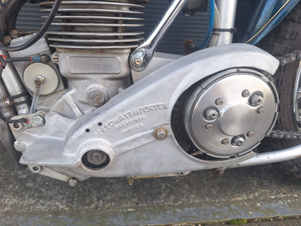 Nette en goed lopende JAWA ESO 2 kleps speedway motor. Heeft de zeldzame stalen tank, stalen achterspatbord en het bijzondere koppelingshandle. Mooie verchroomde stalen velgen, achterwiel met enkelzijdige tandwielmontage Met zeer zeldzame Zweedse gegoten alu primaire kast (Speedwayimporten Sweden). Video van de lopende motor via whatsapp.